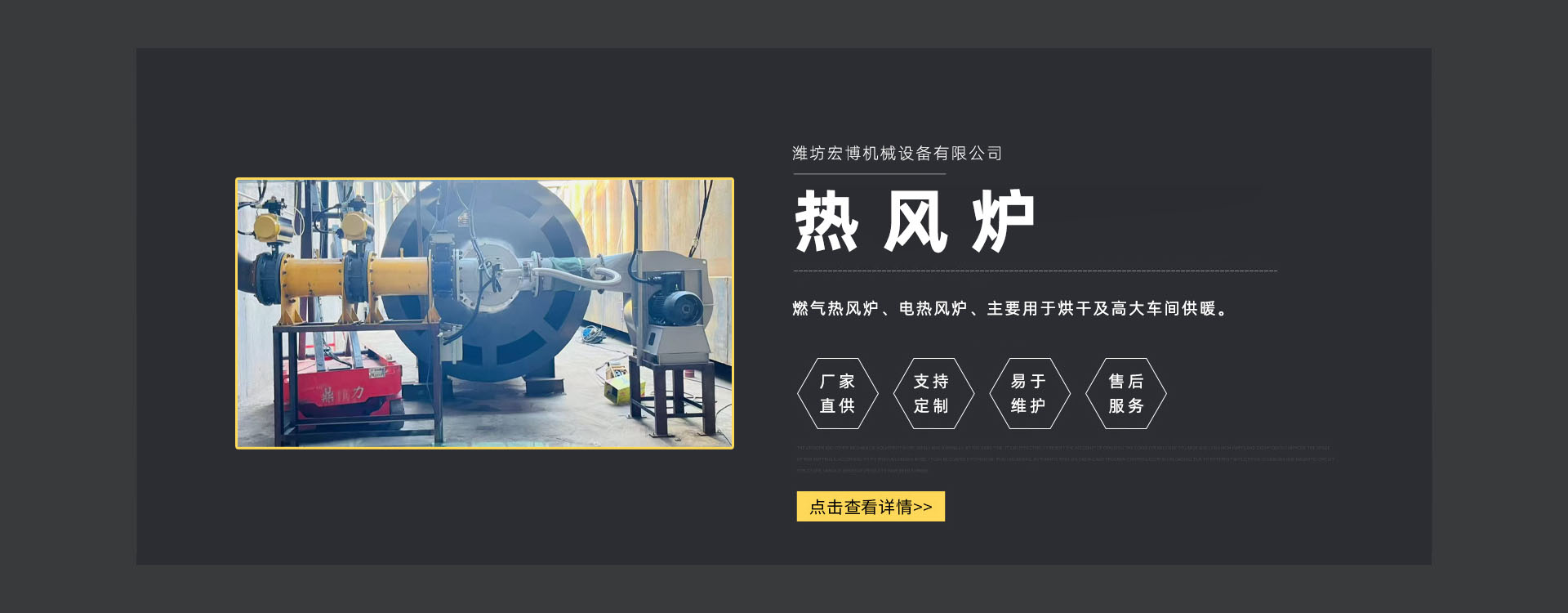 濰坊宏博機械設備有限公司是從事熱風爐、烘干設備、供暖設備的研發(fā)、設計、制造和服務于一體的實體企業(yè)。長期以來,企業(yè)以市場的發(fā)展和客戶的需求為導向,集多年的生產(chǎn)技術(shù)與經(jīng)驗為一體,不斷開發(fā)和優(yōu)良產(chǎn)品。